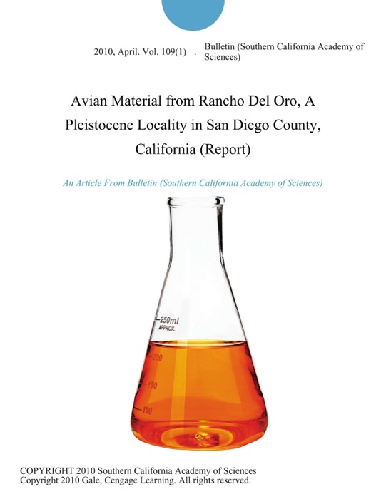 - Title: Avian Material from Rancho Del Oro, A Pleistocene Locality in San Diego County, California (Report)